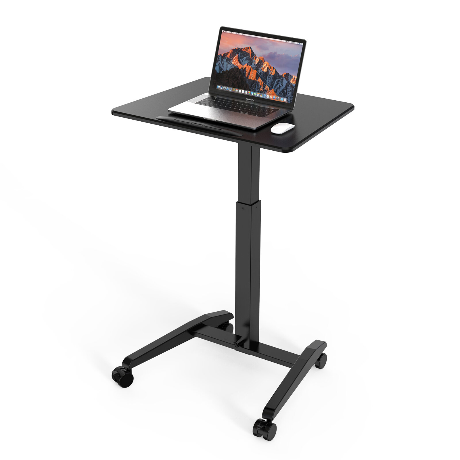 Adjustable Height Laptop Desk with Foot Pedal & Locking Wheels for Easy Mobility