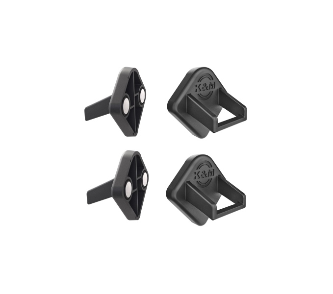 Two strong adhesive magnets function in each holder, their noise-absorbing operation is ensured by small adhesive pads.