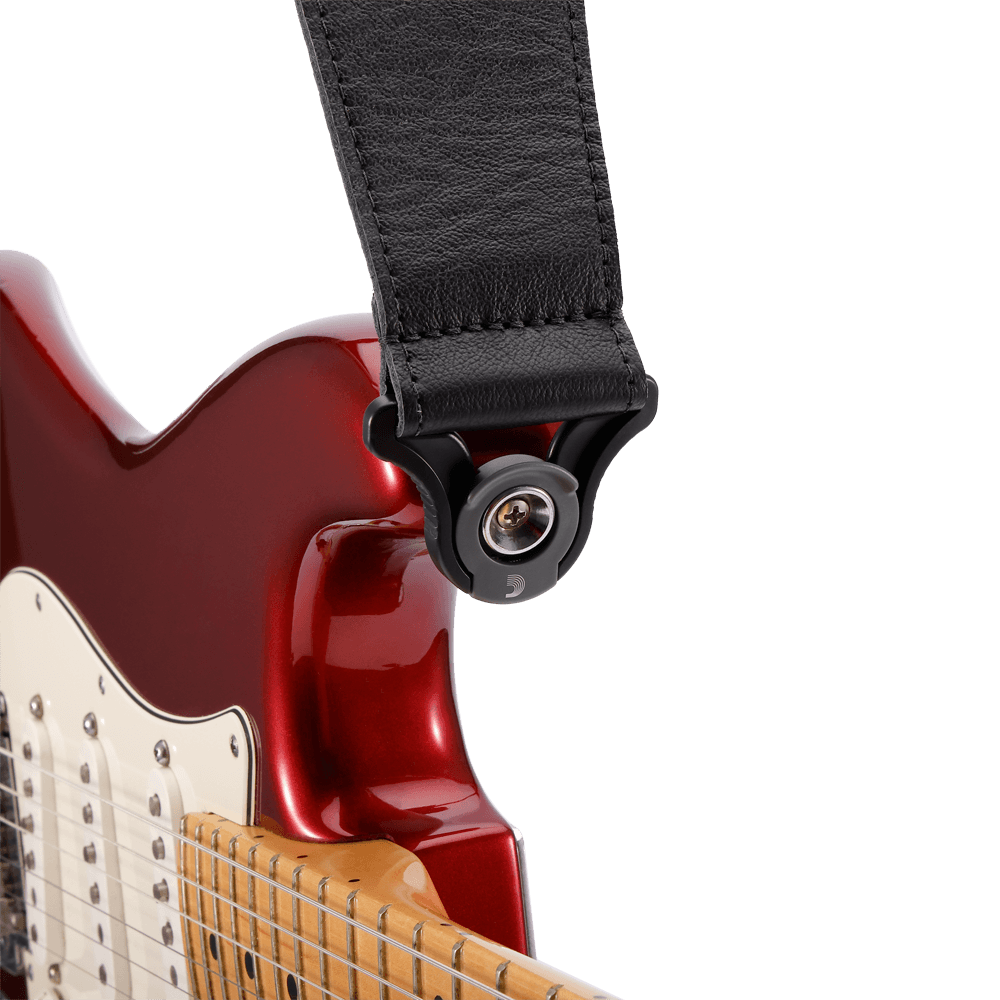 The D’Addario Auto Lock Guitar Strap is the simplest integrated strap locking system for your performance. Simply slide the strap end over the guitar strap buttons and you are locked in – it’s that easy. The grey latch is spring-loaded so it automatically clamps down on the strap button and will not release until you want it to. Just push up on the grey latch, slide off the end, and the strap is removed. Works with most strap buttons on the market. The Auto Lock Guitar Strap was designed in partnership with Ned Steinberger.
