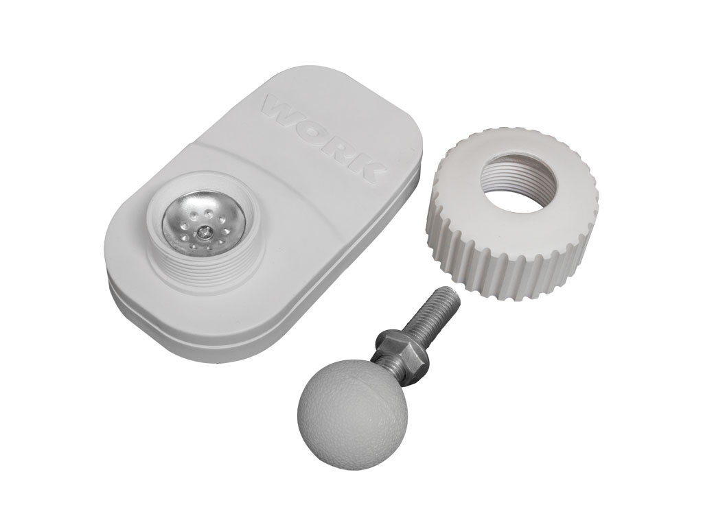 The PB 5 wall bracket is a wall bracket designed for the support and routing of NEO series loudspeakers and is made of plastic. Its construction offers high durability. It consists of two parts, the main body which is screwed to the wall and the main screw which has a sphere at the beginning which is anchored to the bracket and by means of pressure, the angle of the bracket can be changed.
