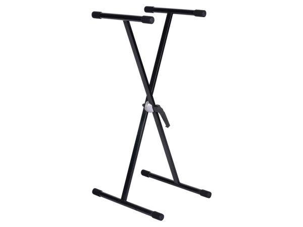 AST85 Single x-type keyboard stand·Easy and fast folding / unfolding system thanks to its pressure crank·Non-slip rubber pads at each end·Up to 60 kg of load·Finished in black