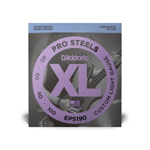 40-100Custom Light Long Scale Bass StringsXL Nickel are the industry standard in electric bass strings. With their clear fundamentals, booming tight lows, and reliable D’Addario construction, they’re trusted by players everywhere to handle any performance. XL Nickel bass strings are made with a high carbon steel core and wound with nickel-plated steel wrap wire, for consistently bright tone and smooth playability, great for a wide variety of bass styles. This 40-100 Custom Light gauge set has a nice even tension, bright tone, and tight low-end.