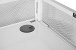 Professional foldable DJ booth, elegant white color high-grade steel construction, black and white removable polyethylene covers with Velcro, plastic carrying bag, 2 shelves with cable management system, 120x60x112.5cm 27.5kg..