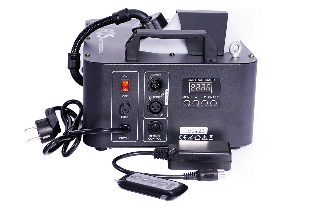 ·Control 4 DMX channels·Wireless controler Capacity/Consumption 2,5 L – 230ml/min ·Installation/Dimension Details ·Power Supply: 240 Volts – 50Hz·Power consumption: 950 Watt·Can operate horizontally or upside down ·Pre-heat: 4 min·Dimensions: 470 x 340 x 240 mm·Weight: 5,5 kg ·Packing Details Carton Box: 49 x 41 x 26,5 cm – 6.5 kg