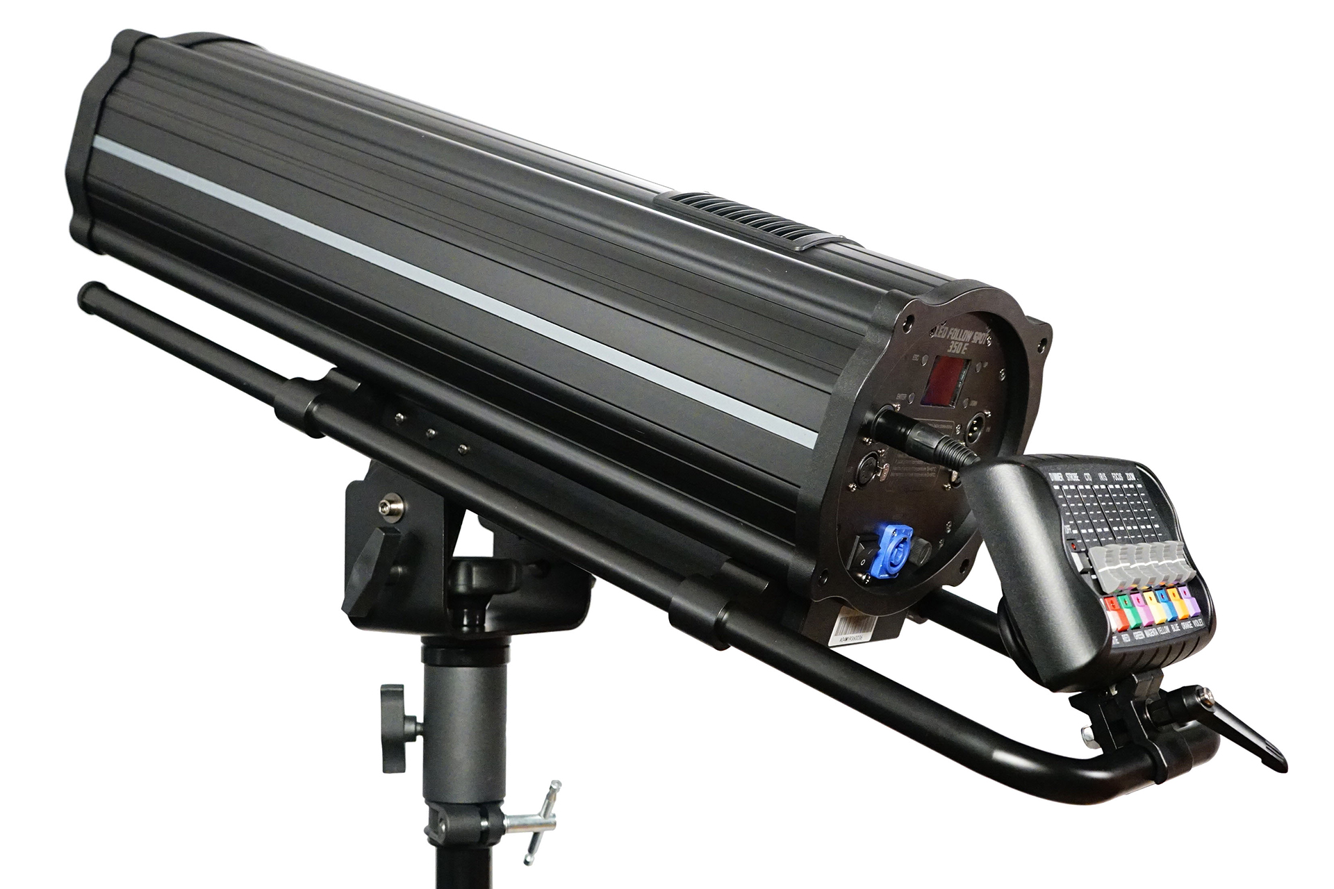 Professional Follow Spot with electronic Zoom and Focus, Led Source 350 watt 8000K, 24000lm, Color wheel 7 colors + open white, CTO wheel? 3200k+4500k+5600k, Beam angle: 7°-13°. 13kg