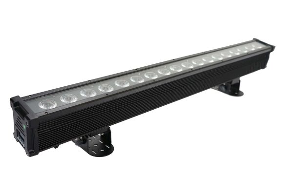 Professional Pixel Control outdoor IP 65 bar for wall washing and stages, 18 RGBW+ Amber 12w LEDs (4in1), Beam aperture: 40°,Auto programs with speed adjustment, 105cm , DMX Channel: 10/28/90/100ch , seetronic dmx and true powercon connectors.