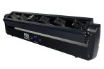 6 stepping motor moving heads RGB Full color laser, 3 watt total power, 6 x 500mw R:100mw G:200mw B:200mw, Y Axis rotating: 240°, Rotation angle: 270°, DMX512(11/26/38CH) size:85*16*45cm, 12kg.