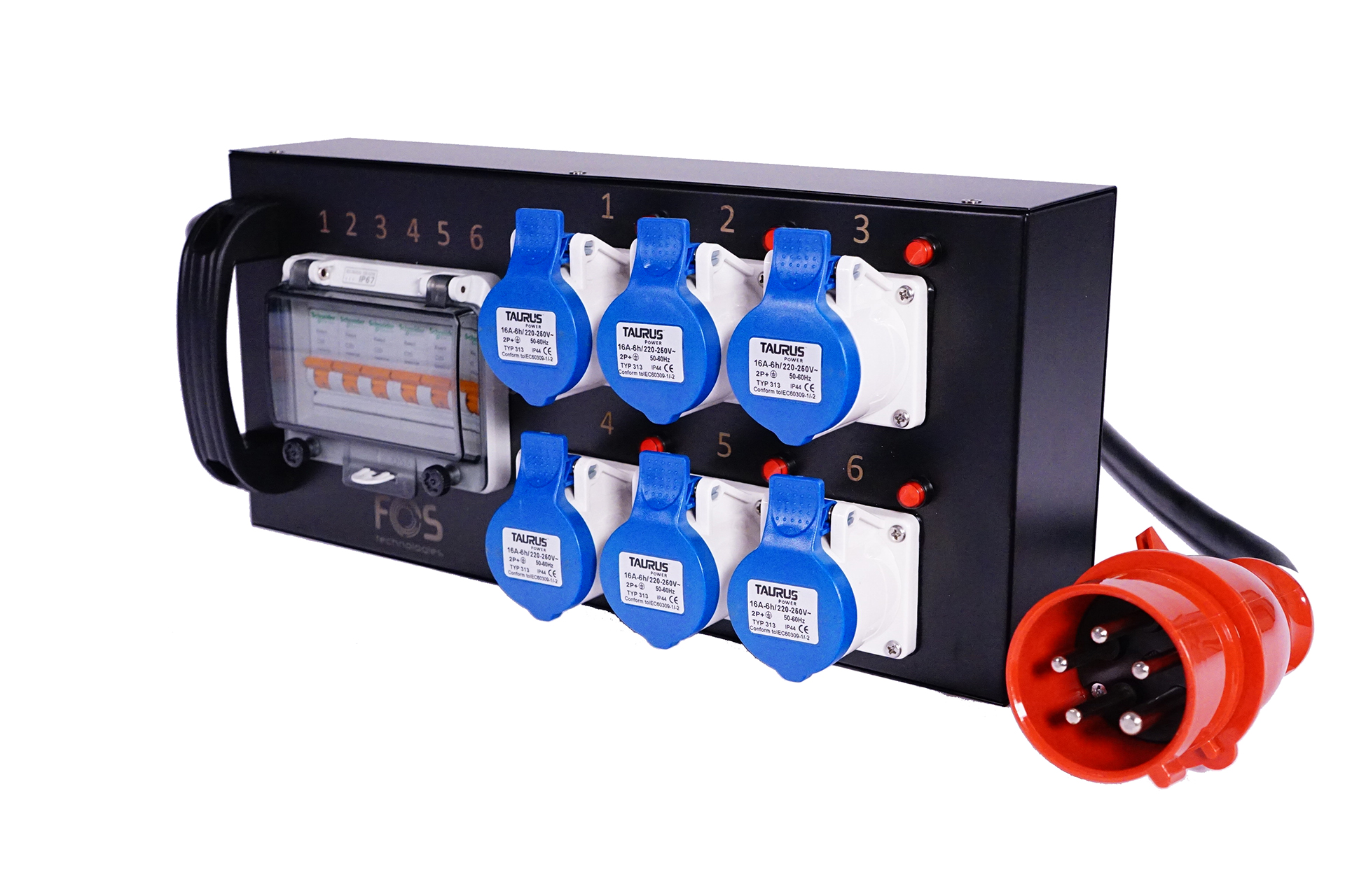 32 A Three-Phase Power Distributor with 6 Schuko Outlets