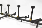 - Rotate-to-Stay Saddles hold 5 guitars or basses facing in any direction