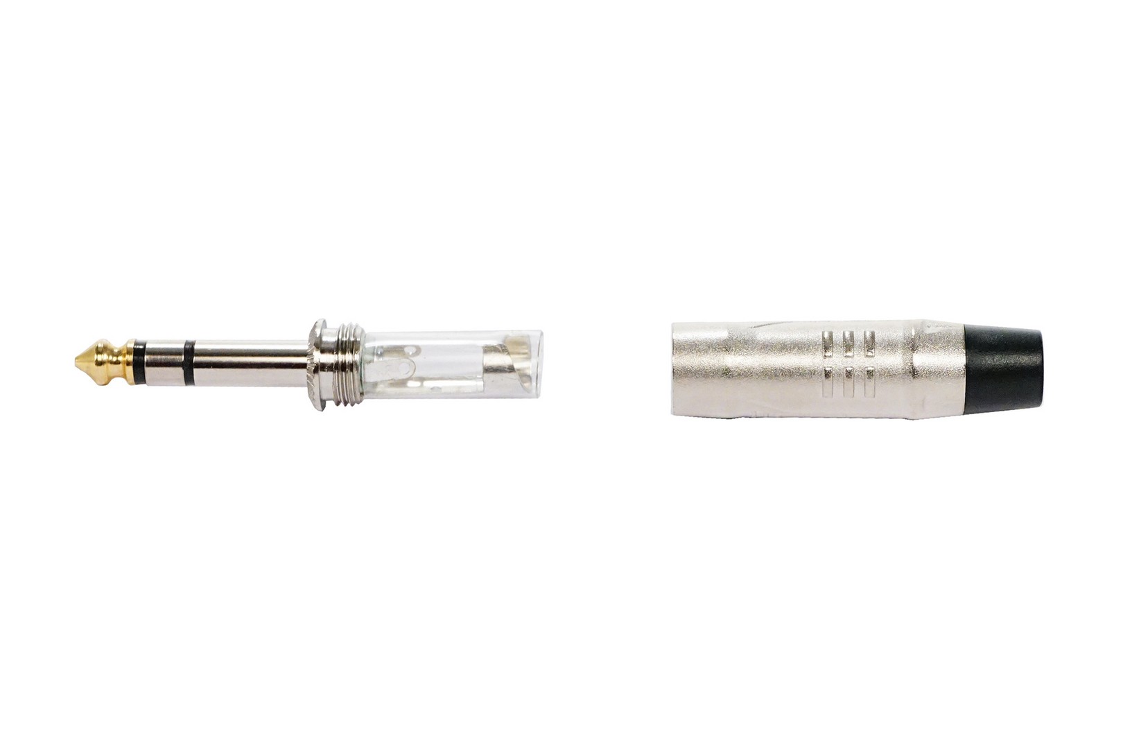 1/4 stereo jack connectors silver, zinc alloy housing, elastic PVC sleeve, compatible with cables of diameter up to 7mm.