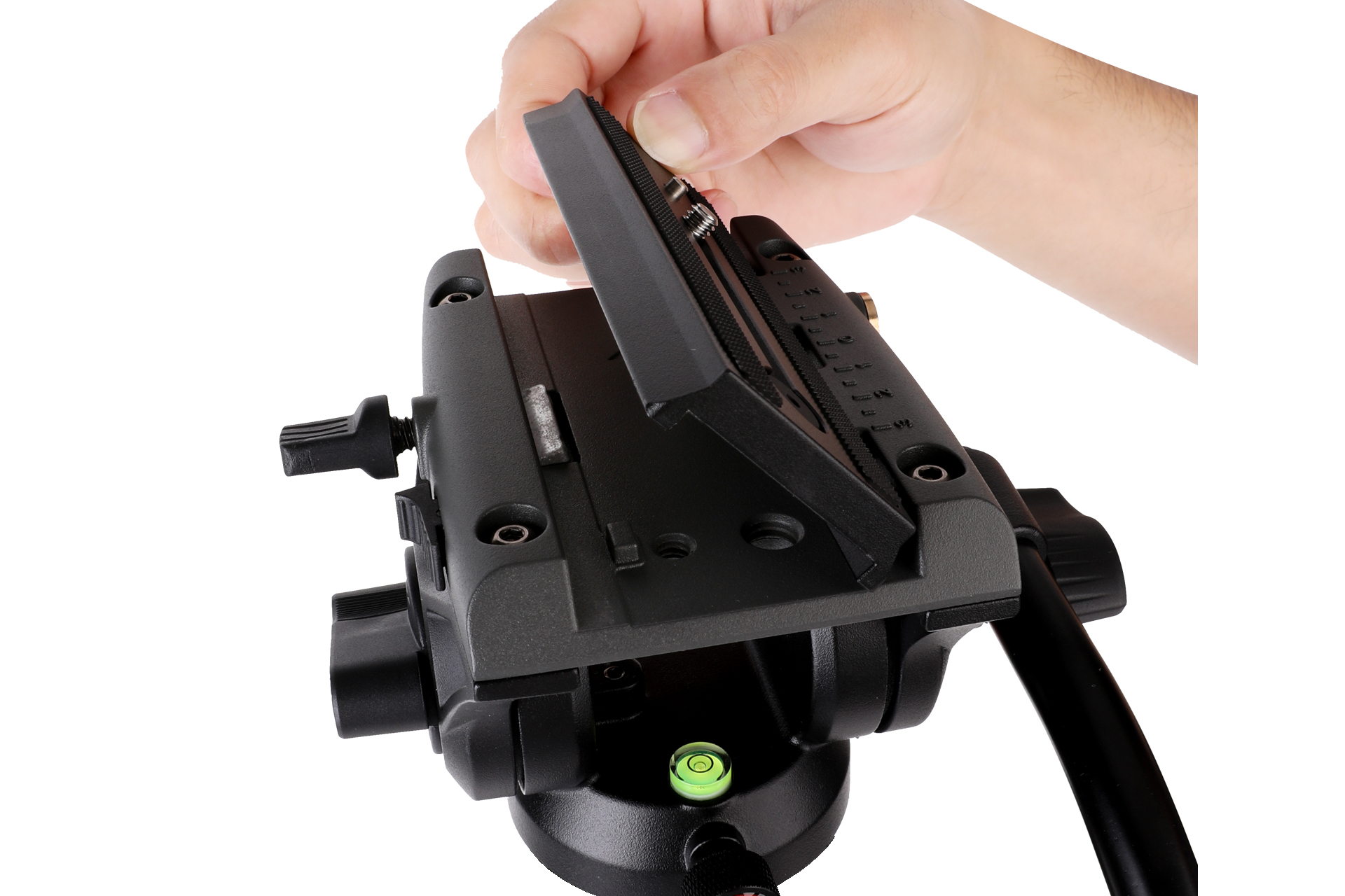 Aviation aluminum alloy tripod for medium and large sized cameras, 75mm fluid head for smooth shooting, flip and knob locking, 3 sections, min height 86cm , max height 190cm, folded height 89cm, max load 8kg , soft bag included.