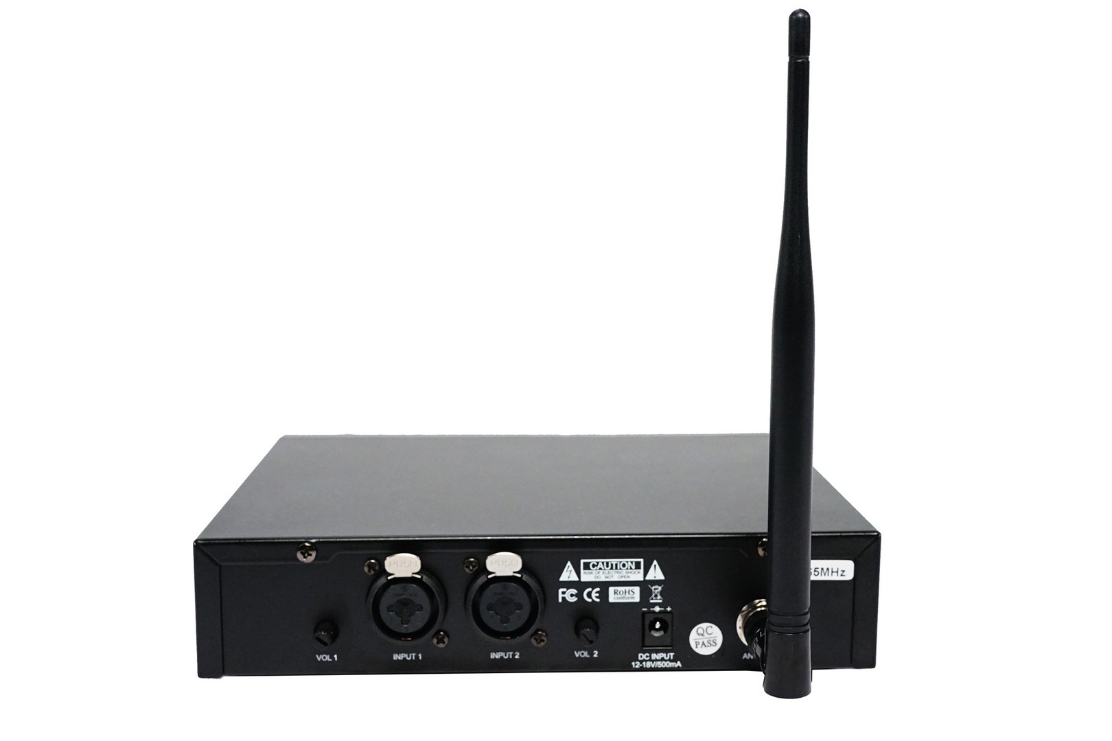Wireless in ear monitor system, freq. range UHF 863-865MHZ, IR sync downloading the frequency from receiver, LCD display shows the RF level, AF level, channel and frequency, 200m line-of-sight operating range.