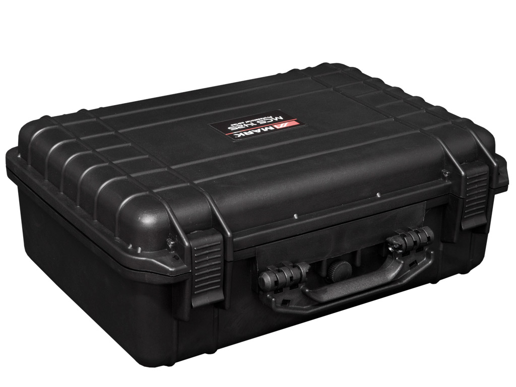 ABS case. Inner protective foam. IP 67. Internal 425 x 155 x 284 mm.