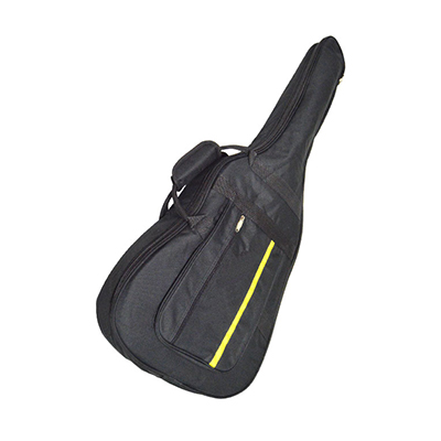 Electric guitar caseCharacteristics·Color: Black with reflective yellow stripe·Reinforced lashes and stitching at the most sensitive points·Two adjustable straps and handle on the back·Padded transport handle·PRO – LOK system in zip fastener·Heavy-duty finish on strap rings·Master Box (20) pieces·Protective filler thickness = 5mm