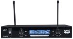 2-channel wireless system. Receiver + 2 handheld microphonesBi-channel wireless microphone system in UHF band. It incorporates a LCD display that informs about the group, antenna and operative channels. Each channel disposes up to 5 frequencies to choose. It has independent balanced outputa (XLR3 connector) and unbalanced mixer output (Jack ¼” connector). The frontal side has the independent gain controls of each channel as much as AF and RF LED.