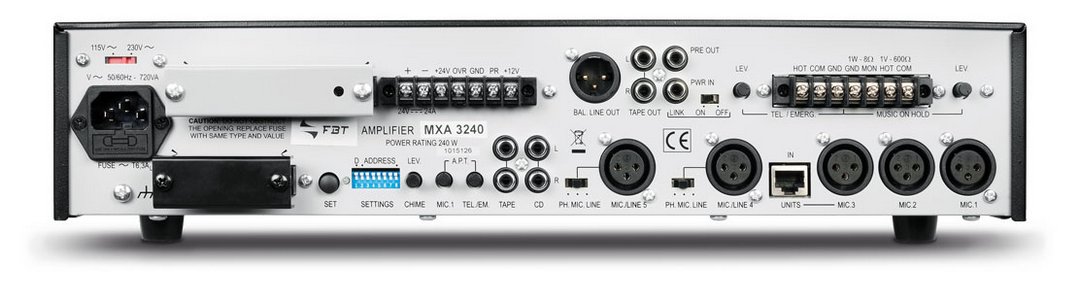 MXA 3000 SeriesIntegrated mixing amplifier – 120Wrms – Output for selected zones – 230V/115V PRODUCT