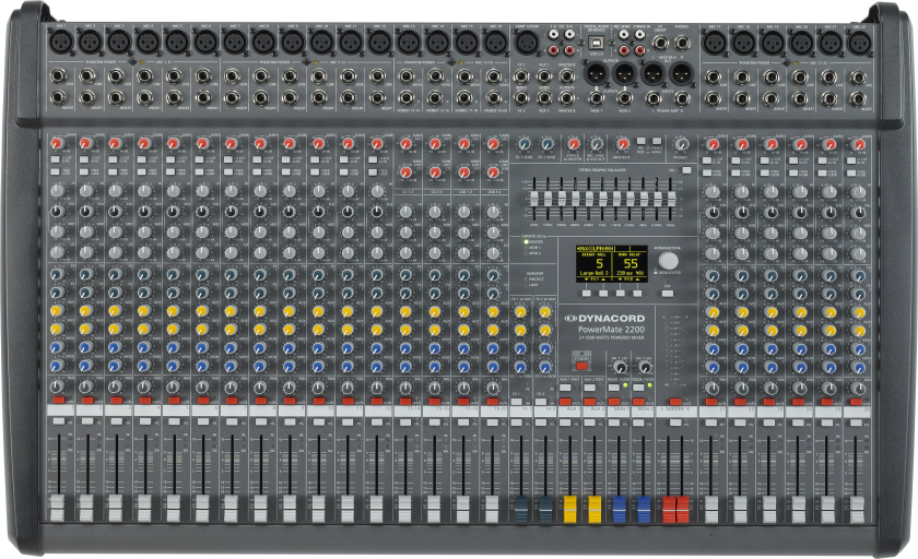 The PM2200‑3 is the largest member of the PowerMate family. It is by far the most powerful and best equipped compact powered mixer on the market.