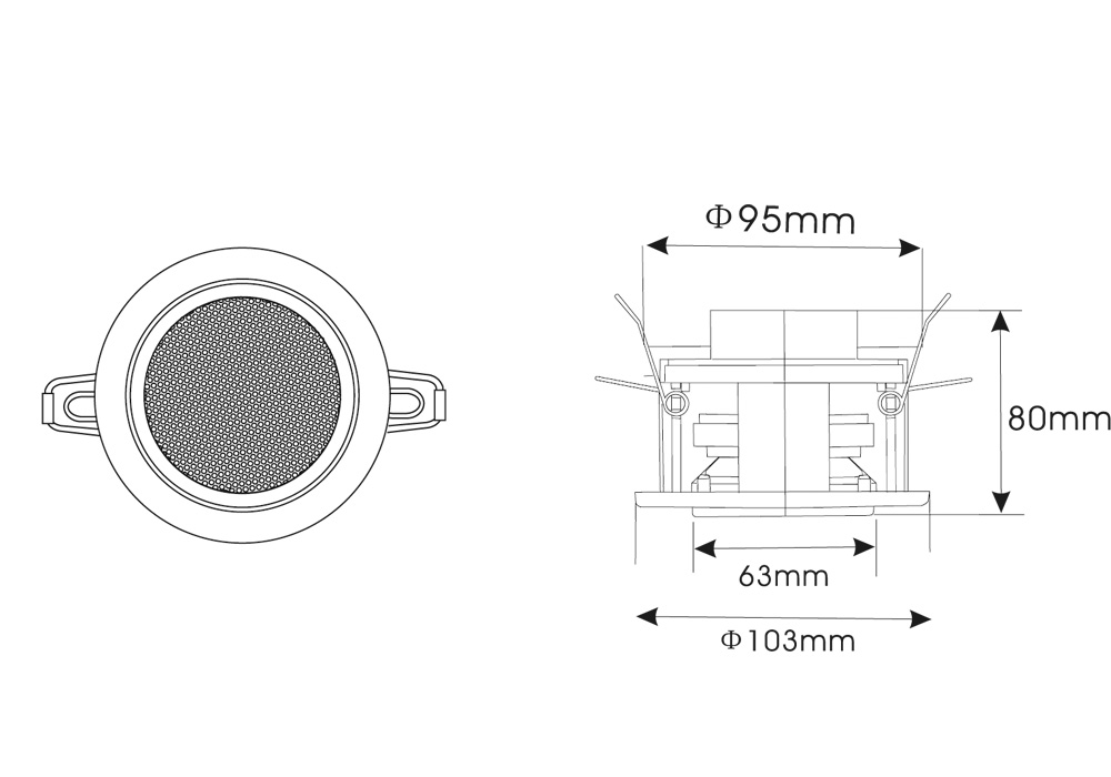 Ceiling speaker. 6/3 W @ L100V. 2.5” Woofer. Quick assembly Black