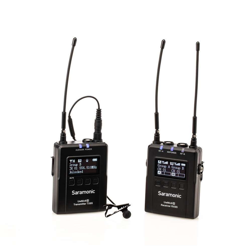 The Saramonic UwMic9 UHF Wireless Lavalier Microphone System provides stable, interference free audio in portable, compact and low cost package. UwMic9 RX9+TX9+TX9 could support two transmitters and one receiver working simultaneously. It is a perfect fit for DSLR videography, field recording and interviews, broadcast TV, ENG, providing dependable audio broadcasting and recording.